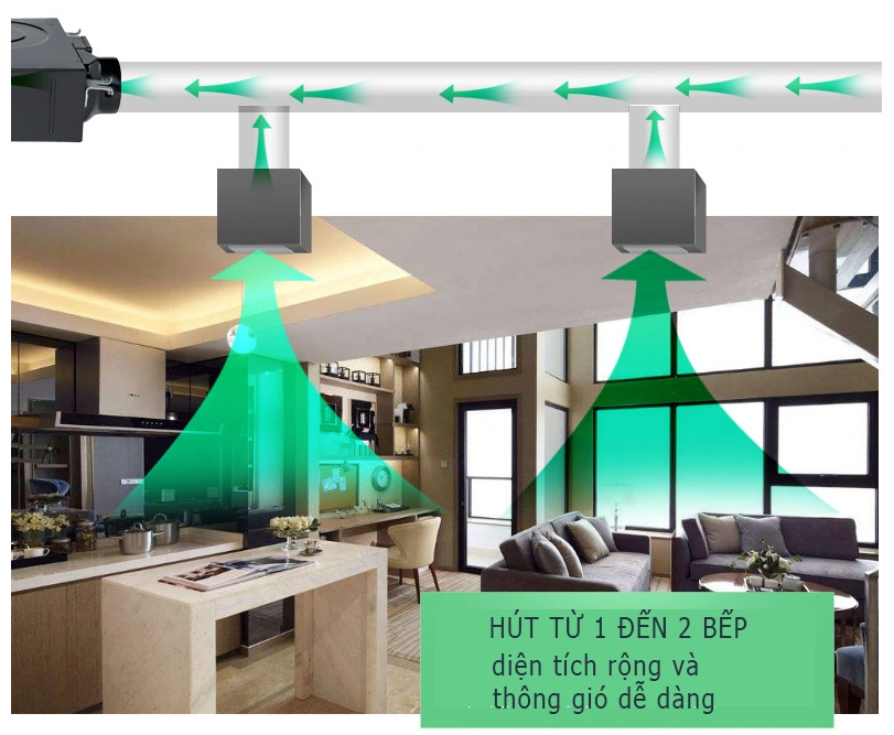 - Thông thường, công suất của hệ thống này là 170W hoặc 550W tùy nhu cầu của người sử dụng. Lưu lượng gió: 920m3/h hoặc 2300m3/h, áp suất 240 Pa và 480 Pa, độ ồn 49dB, 57dB, 58dB.