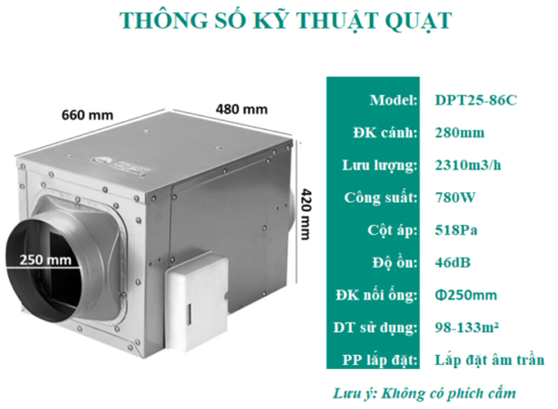 + Dễ kết nối hệ thống ống gió: Quạt được thiết kế theo dạng nối ống, thuận tiện thi công và bảo trì.
